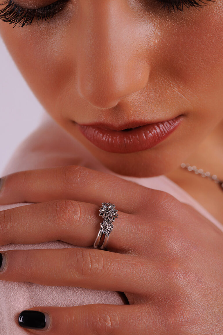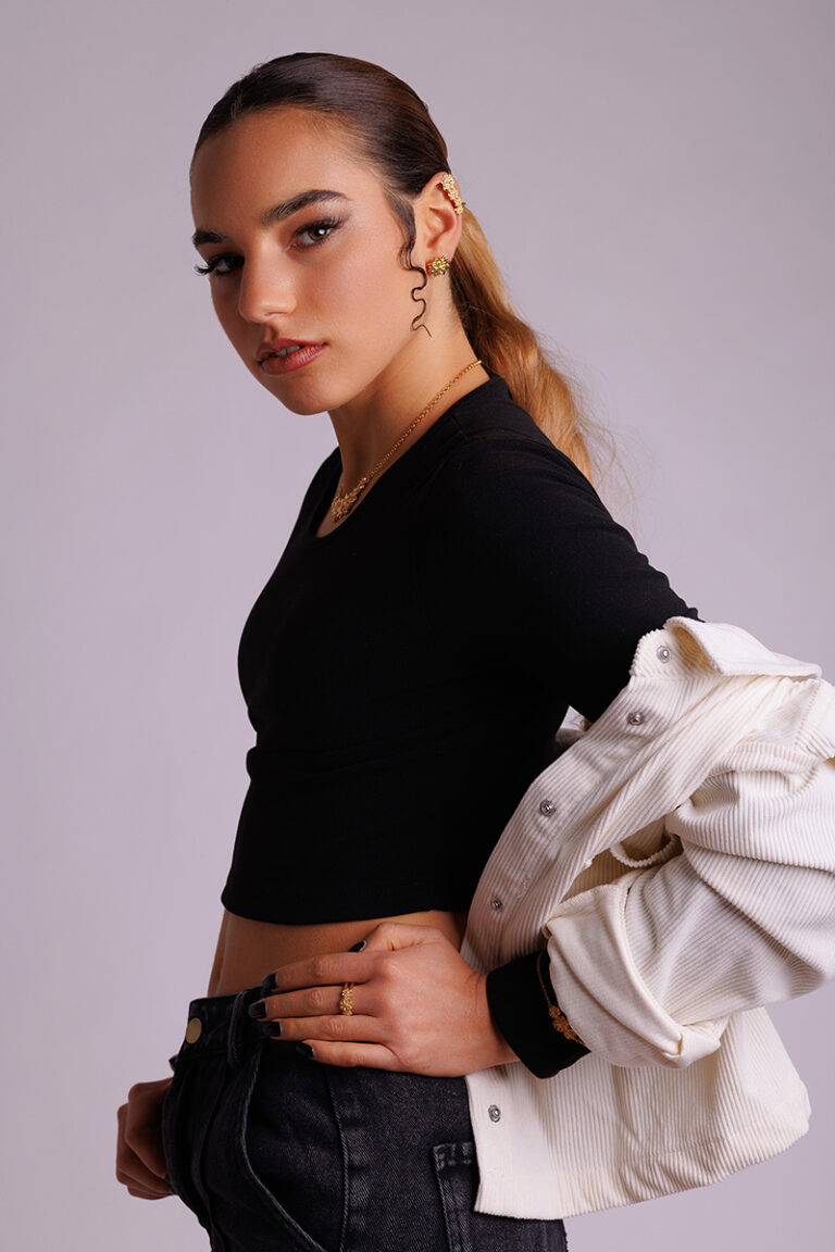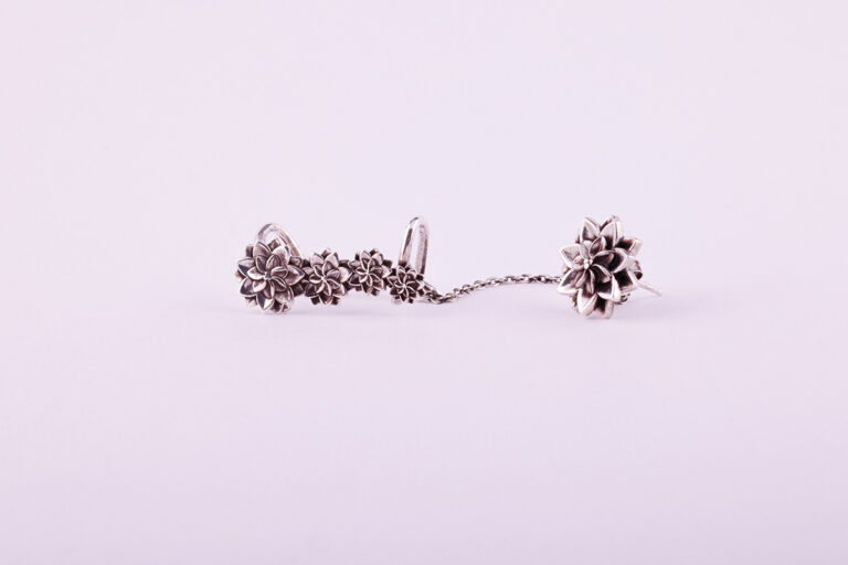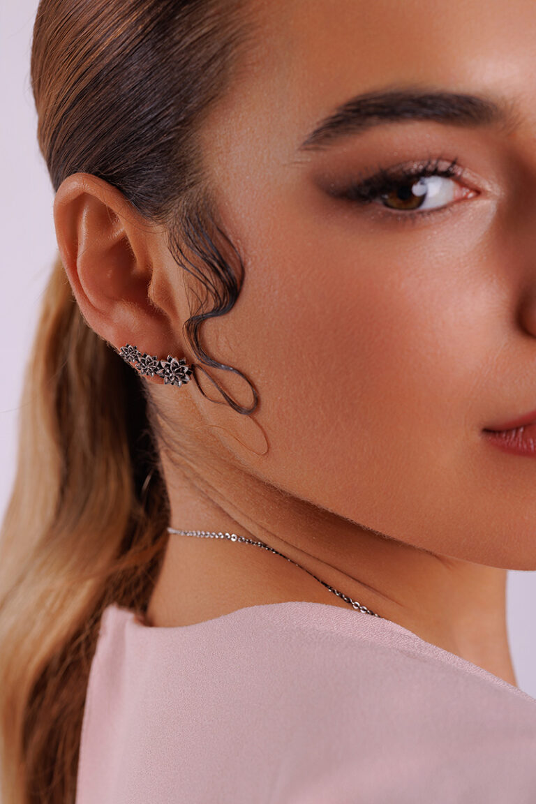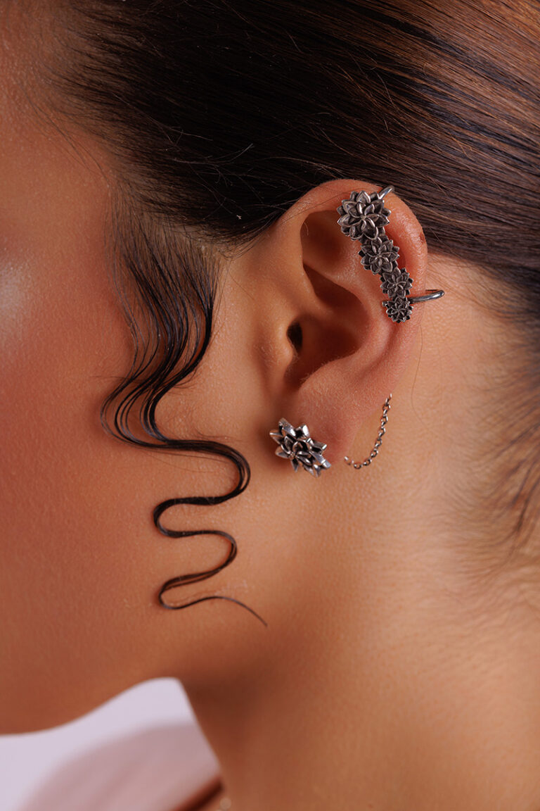 Orecchino indossabile Dalia con catena e bottoncino Placcato Oro Nero