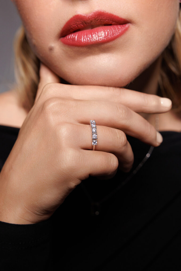 Anello Riviera 5 Pietre in Oro Bianco 18kt