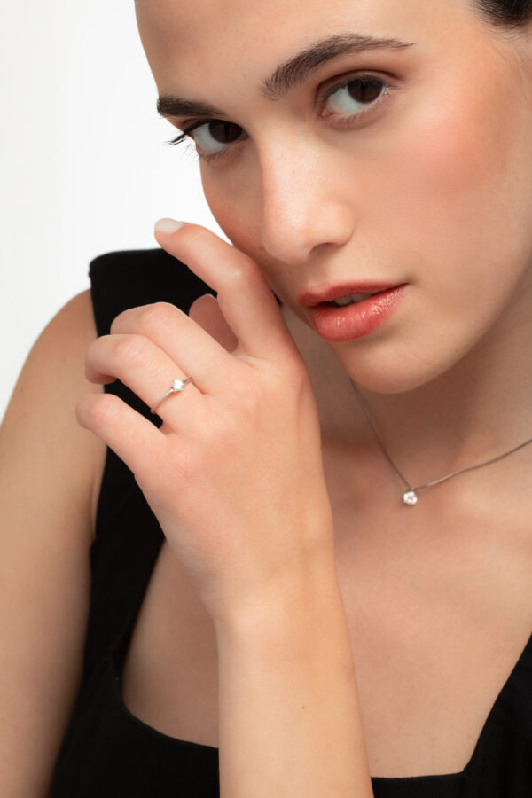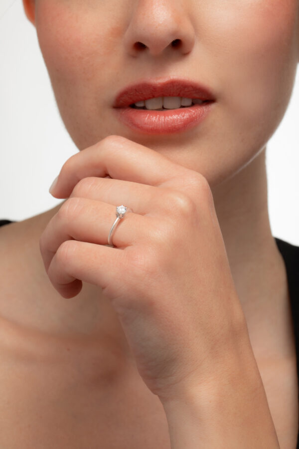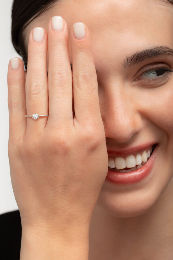 Anello Solitario 6 Griffe in Oro Bianco 18kt