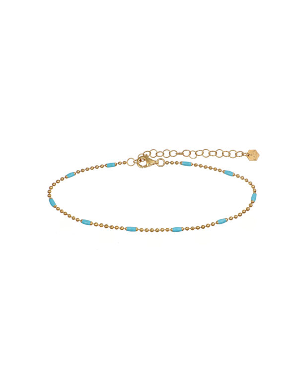 Cavigliera con Catena in Argento 925 placcato Oro Giallo 18Kt e palline con Smalto Azzurro.