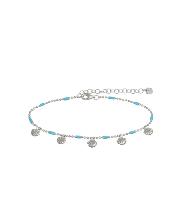 Cavigliera con Conchiglie in Argento 925 e palline con Smalto Azzurro.