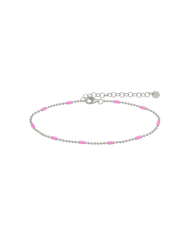 Cavigliera con Catena in Argento 925 e palline con Smalto Rosa.