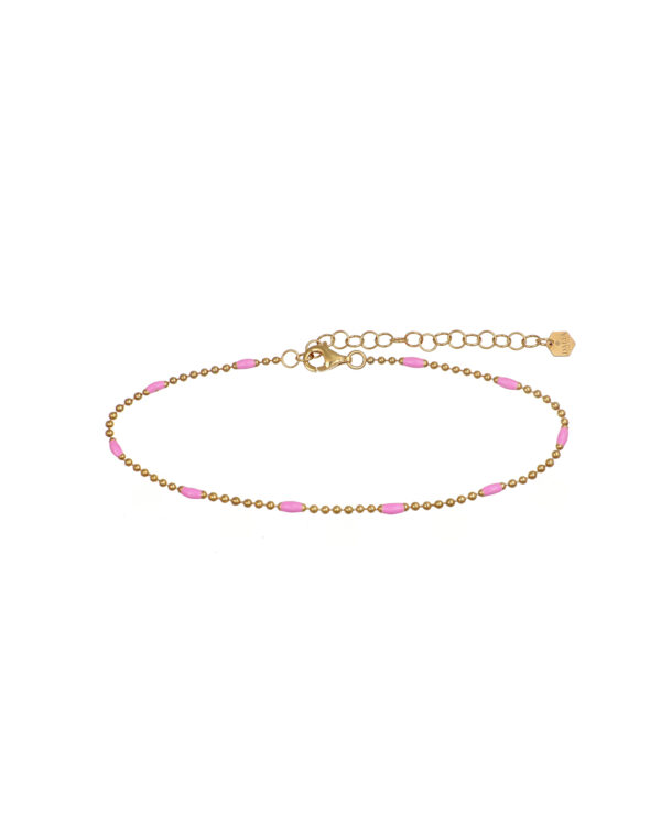 Cavigliera con Catena in Argento 925 placcato Oro Giallo 18Kt e palline con Smalto Rosa.