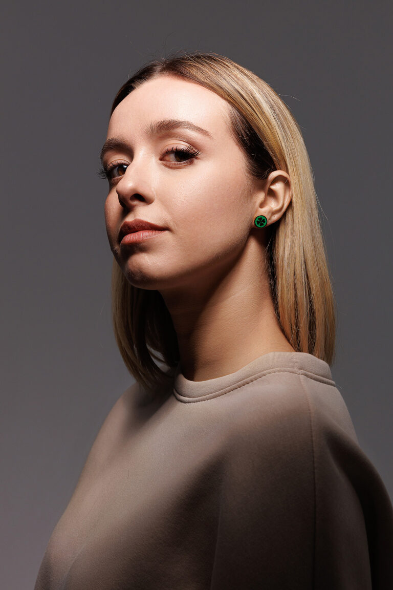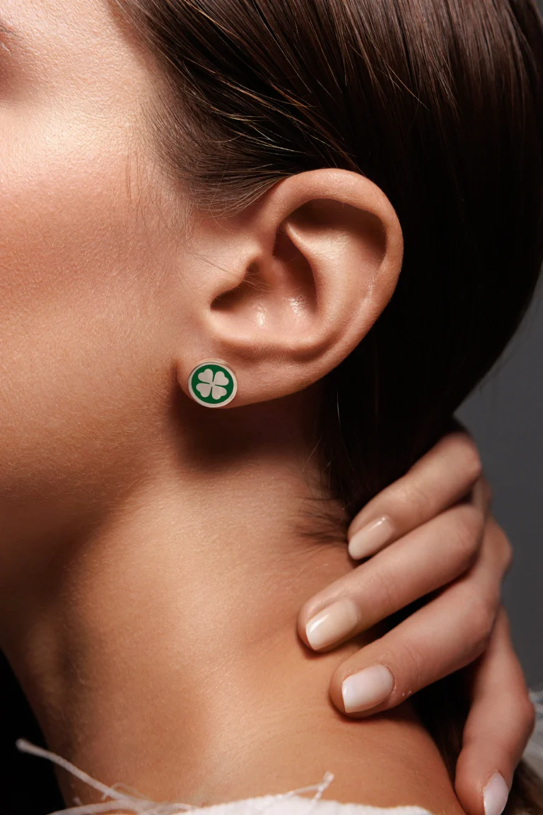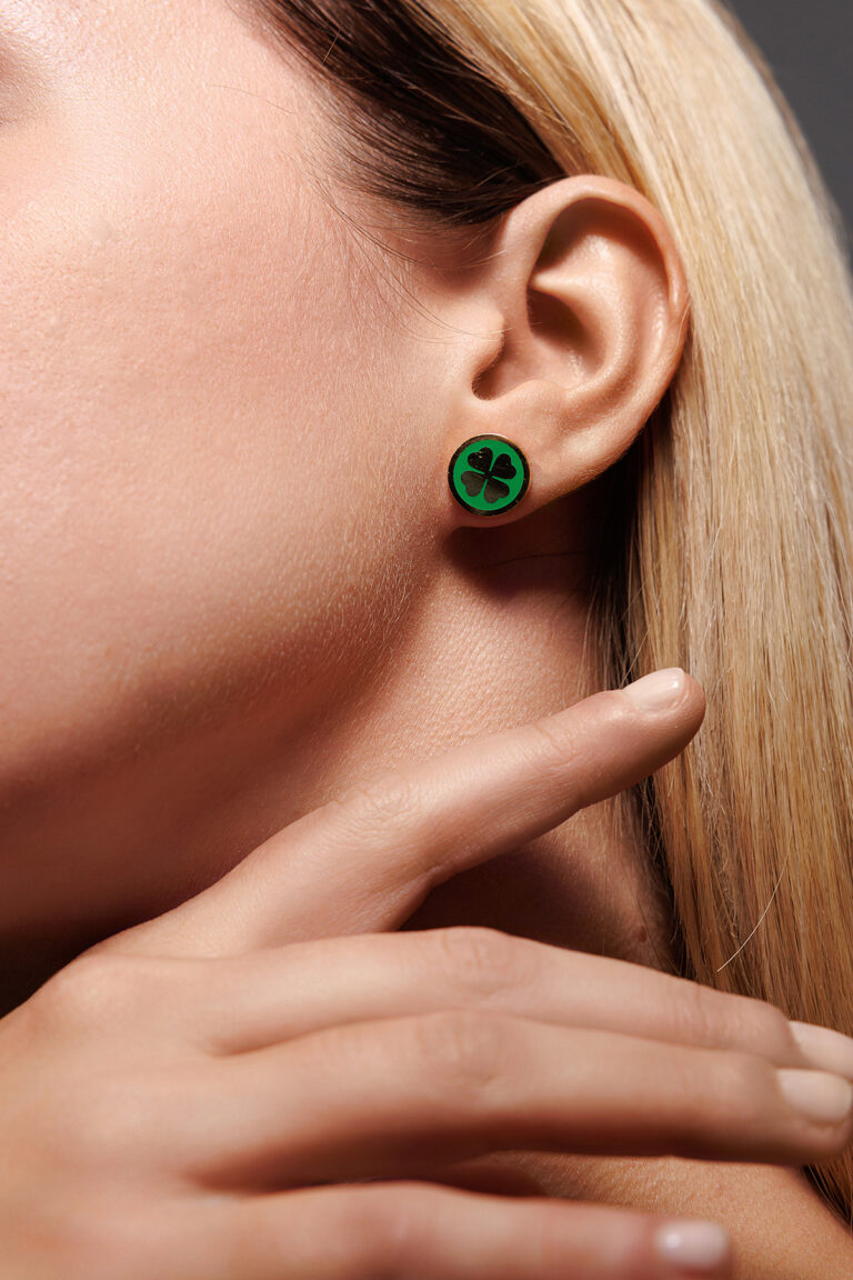 Orecchino Round Quadrifoglio in Argento 925 con smalto Verde