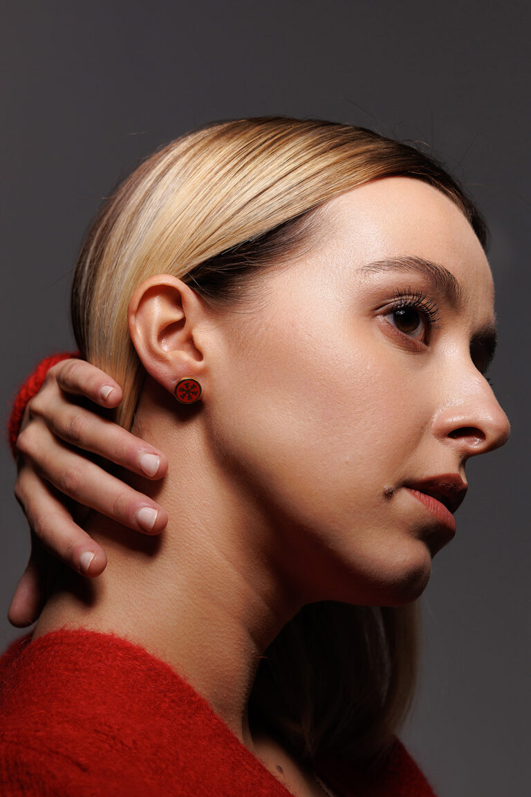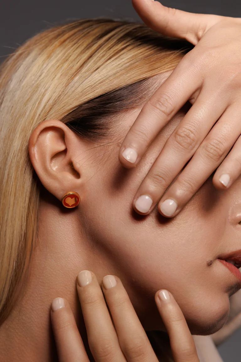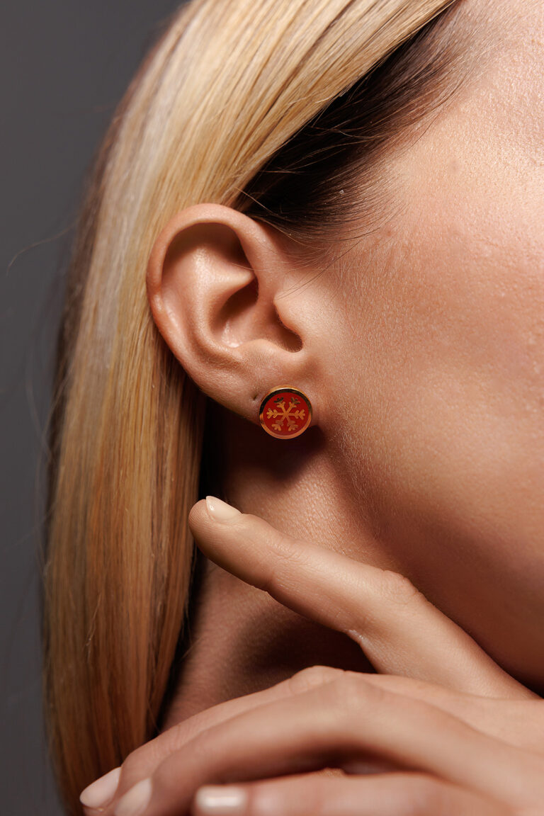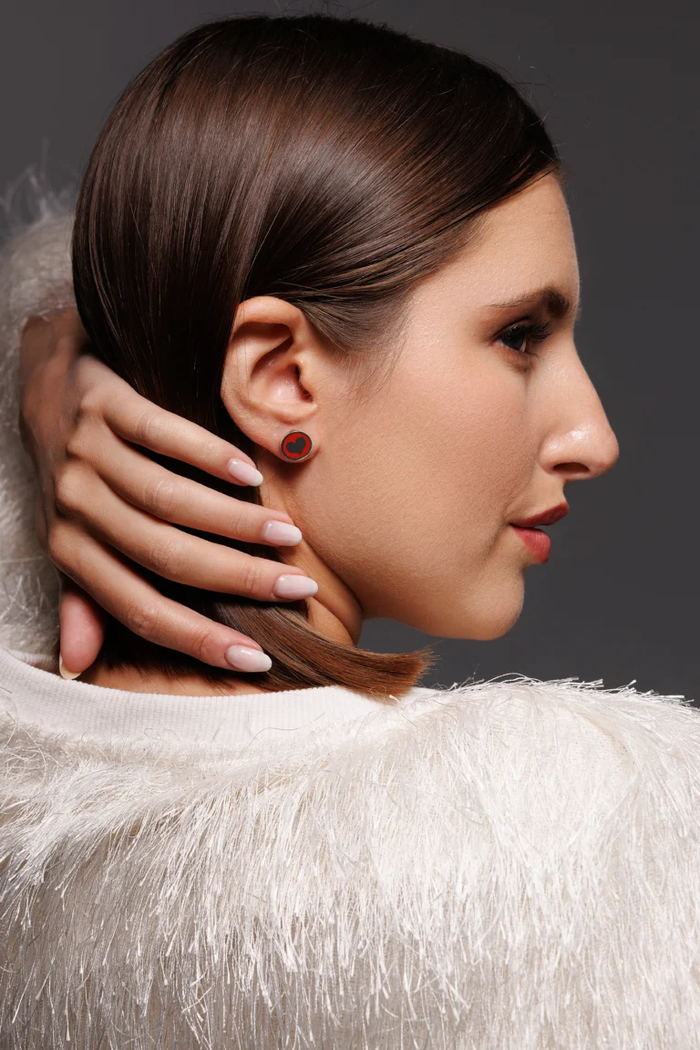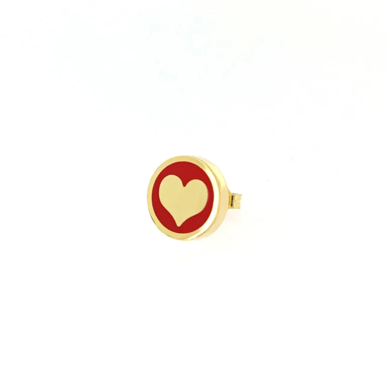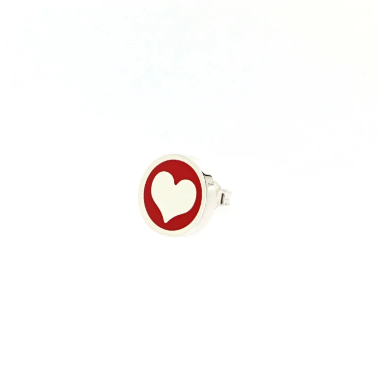 Orecchino Round Cuore in Argento 925 con smalto Rosso