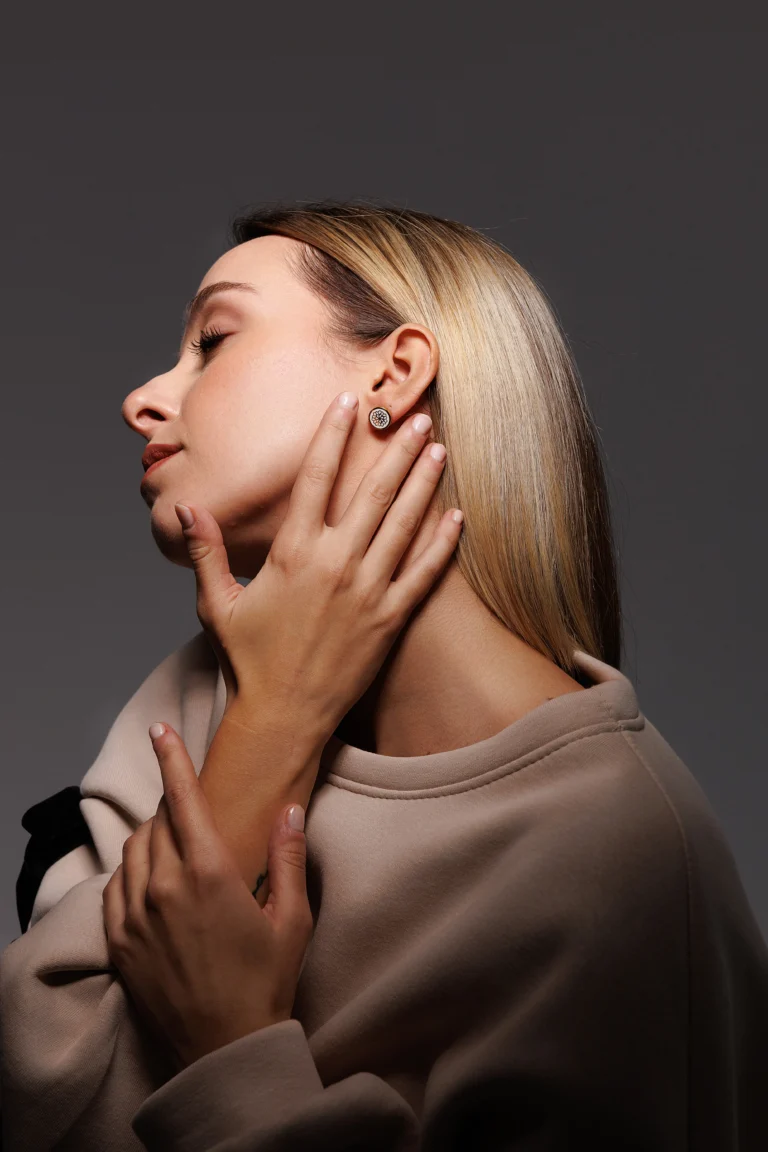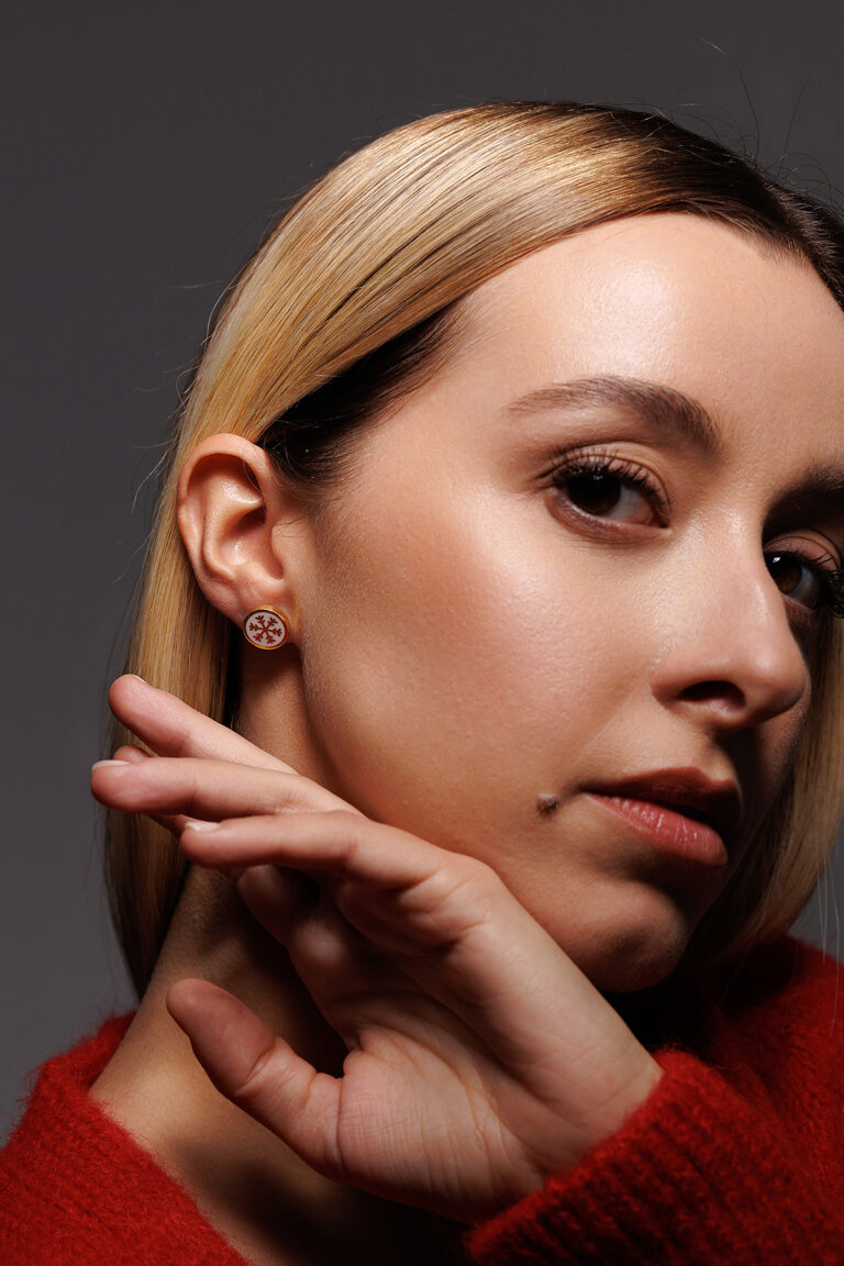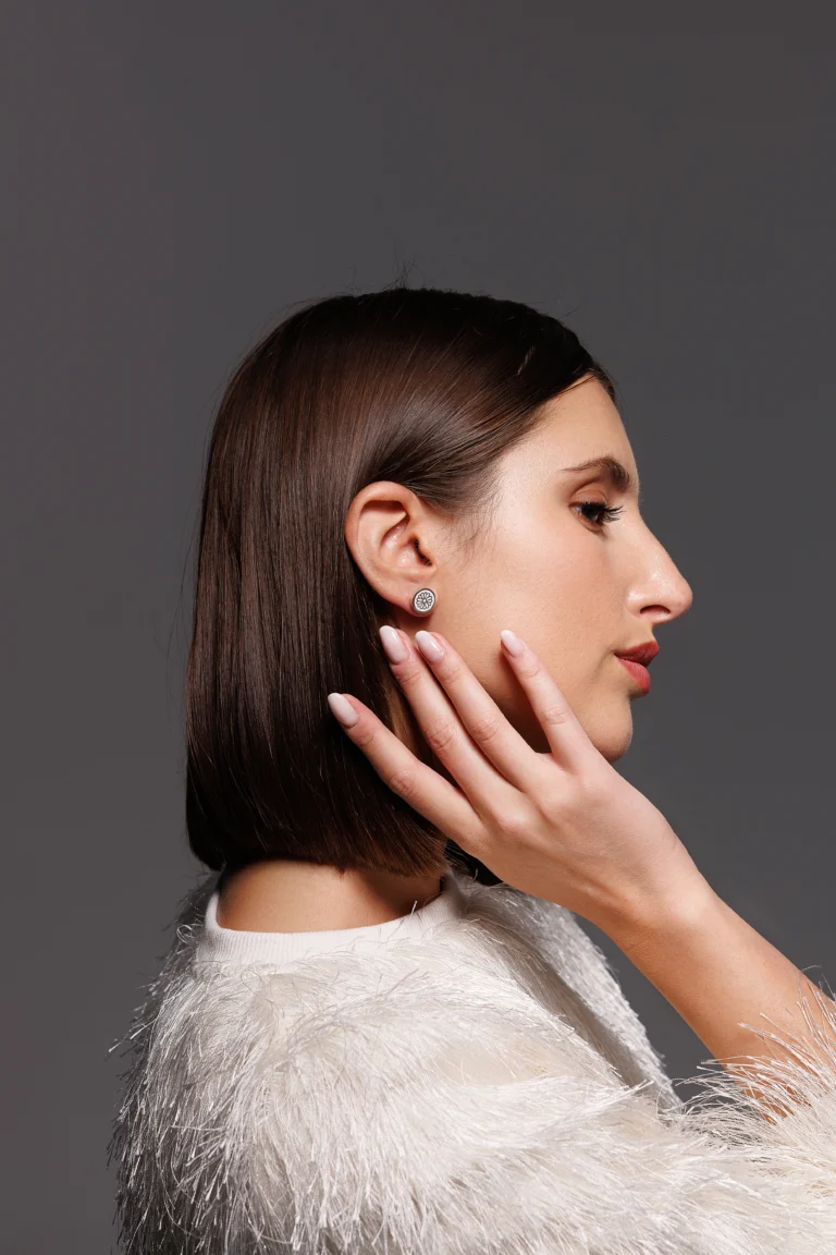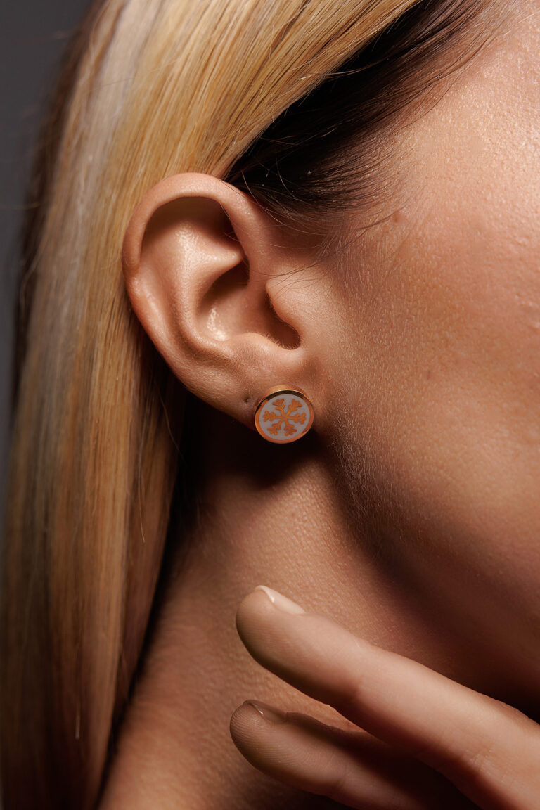 Orecchino Round Dalia in Argento 925 con smalto Bianco