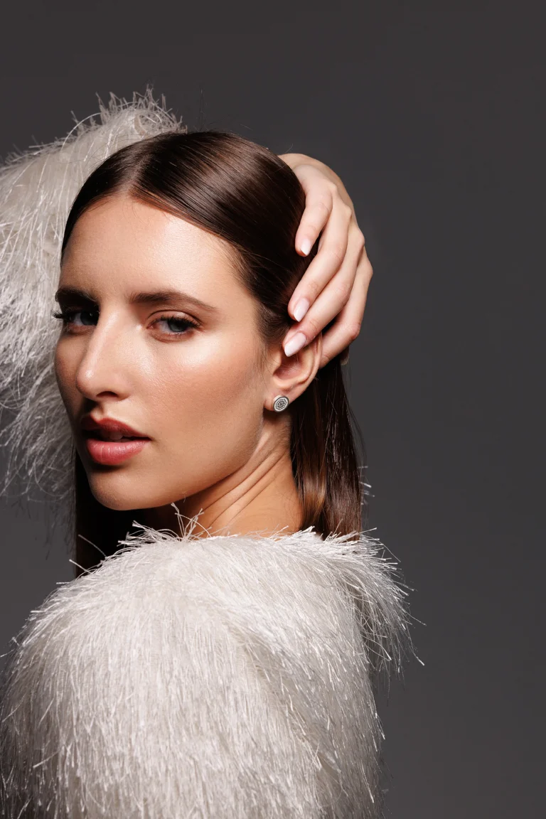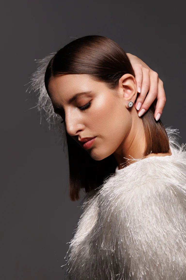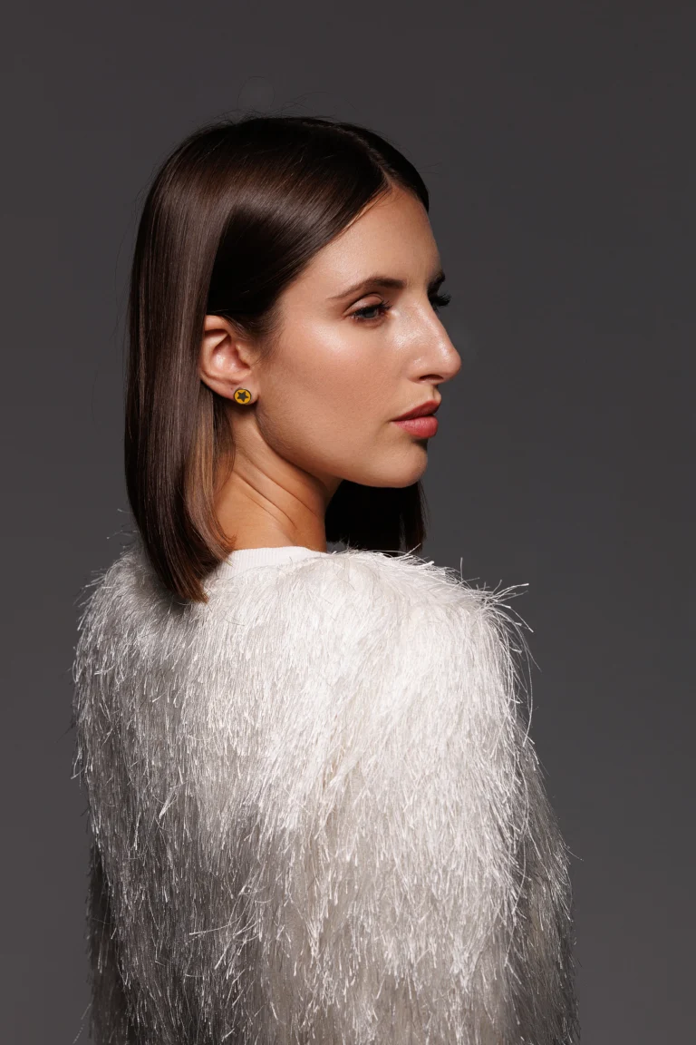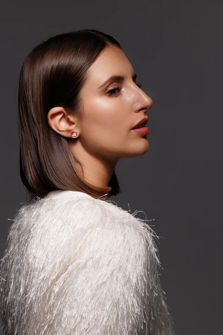 Orecchino Round Dalia in Argento 925 con smalto Bianco