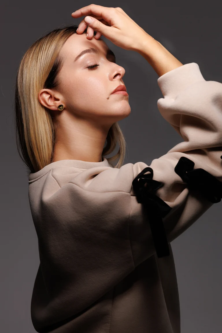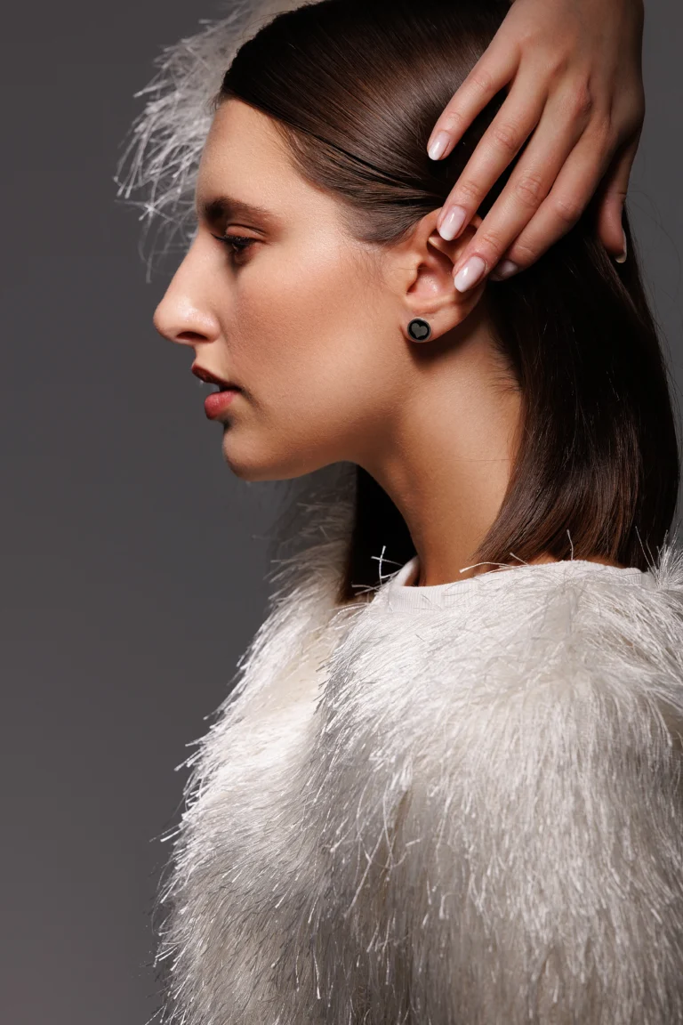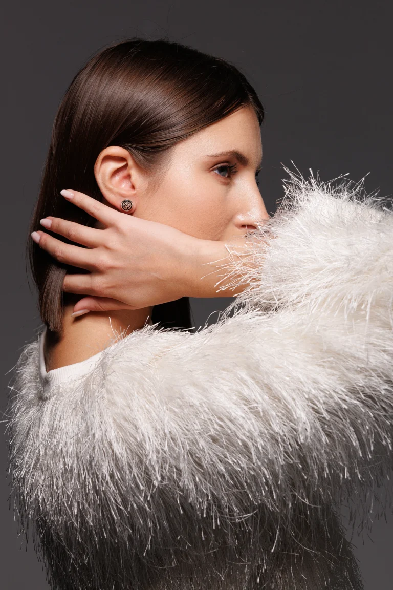 Orecchino Round Fiocco in Argento 925 con smalto Nero