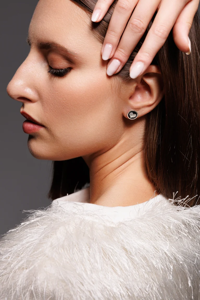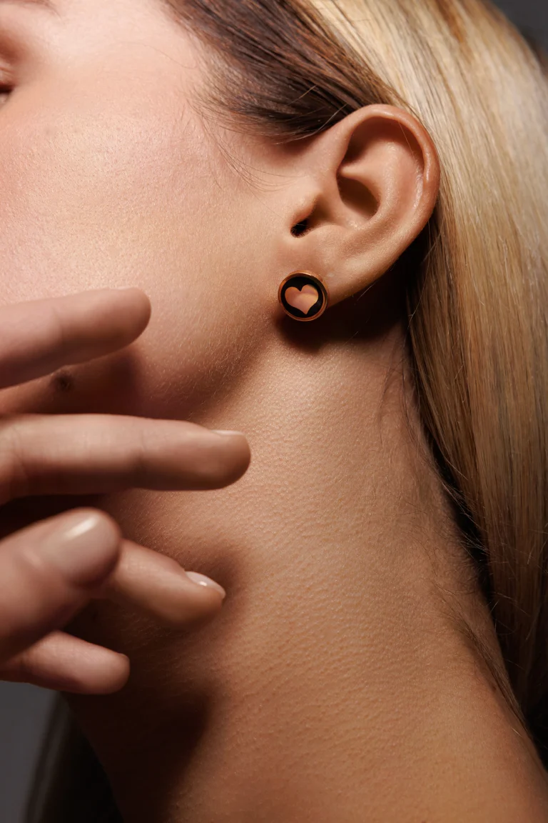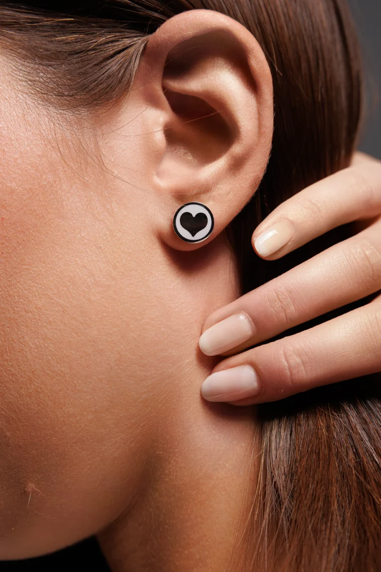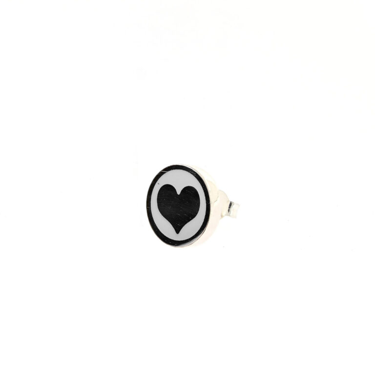 Orecchino Round Cuore in Argento 925 con smalto Nero