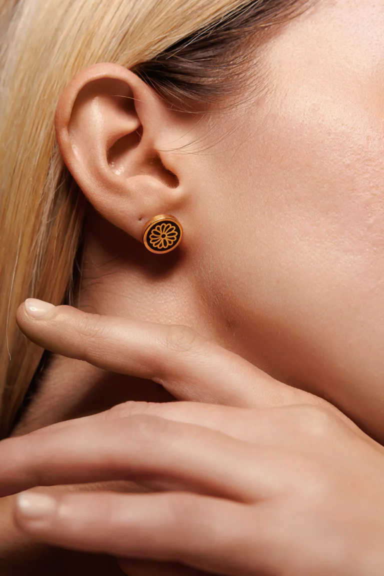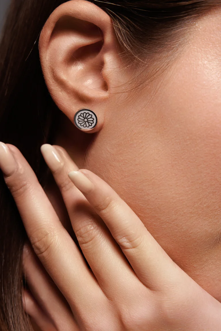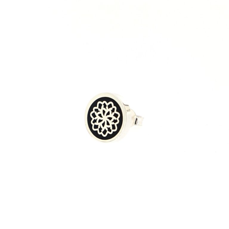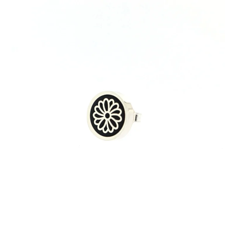 Orecchino Round Margherita in Argento 925 con smalto Nero