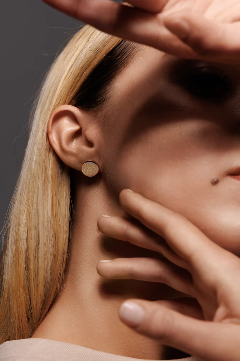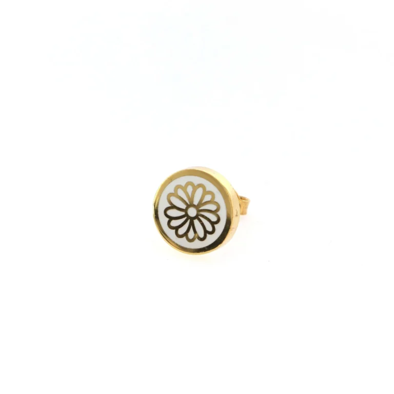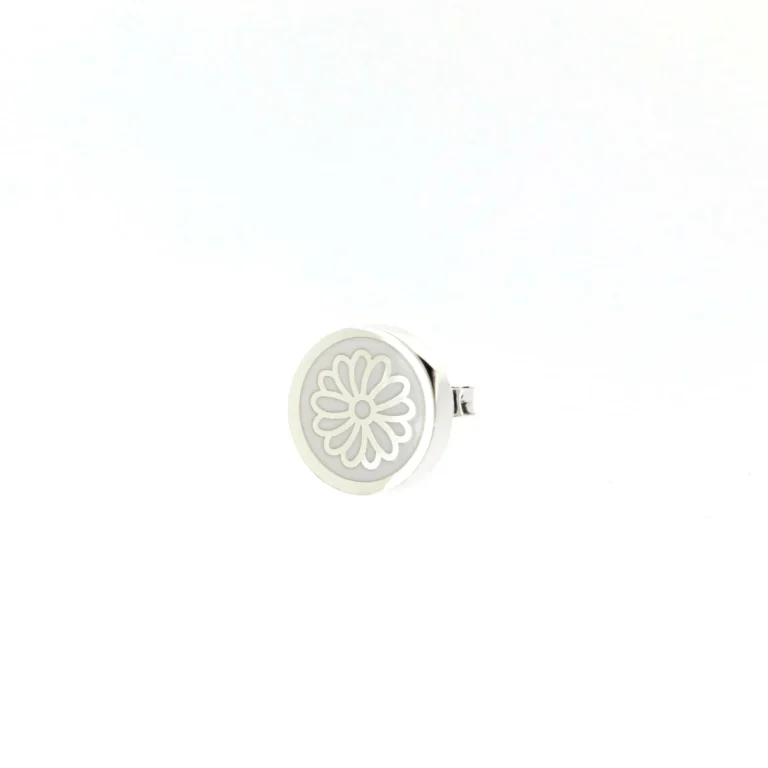 Orecchino Round Margherita in Argento 925 con smalto Bianco