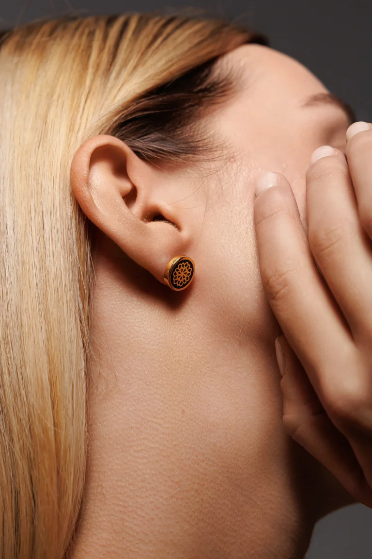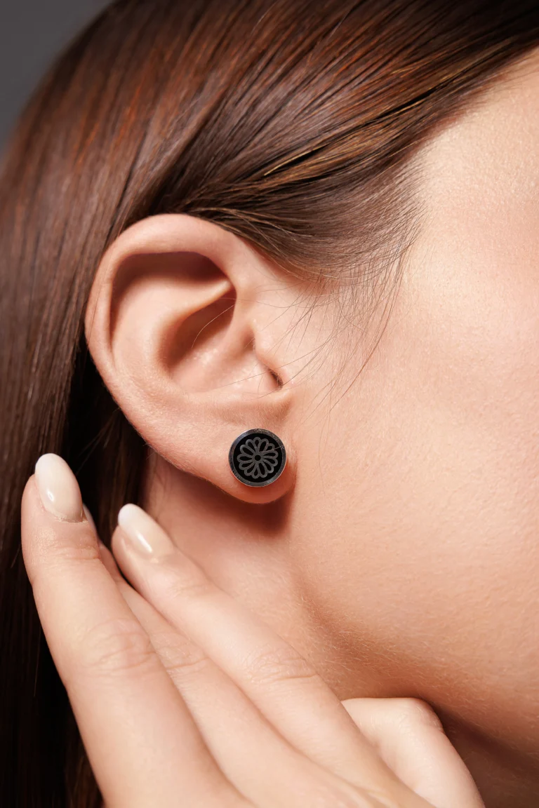 Orecchino Round Dalia in Argento 925 con smalto Nero