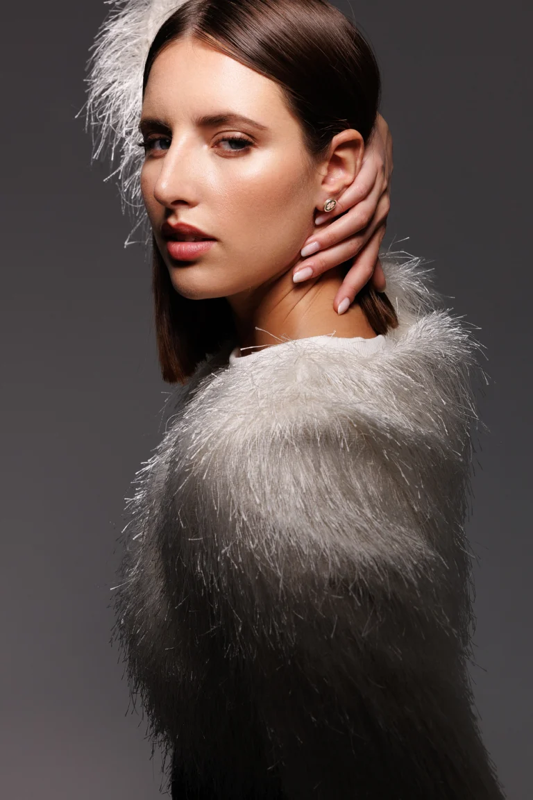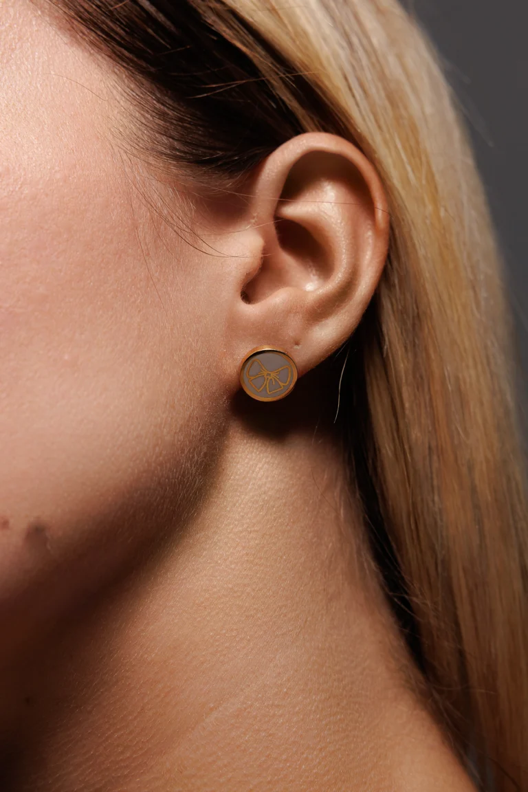 Orecchino Round Fiocco in Argento 925 con smalto Bianco