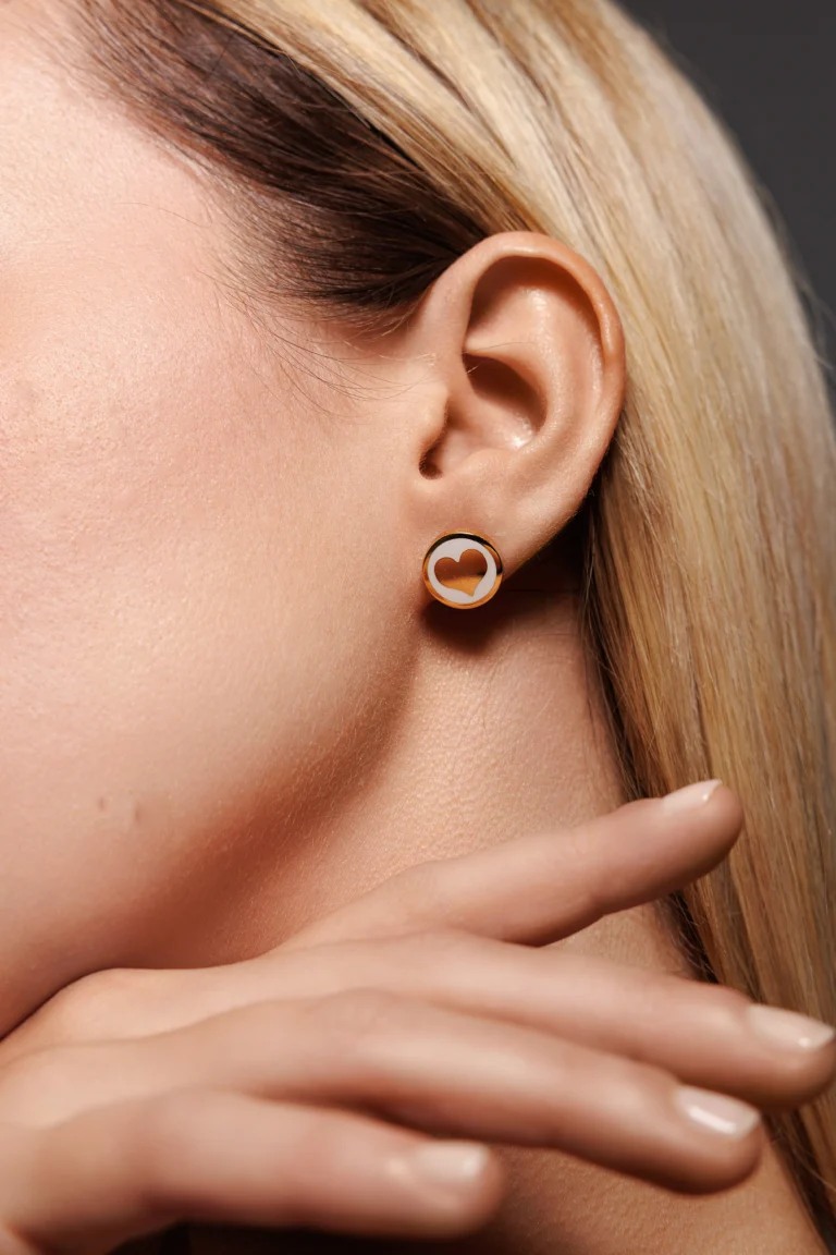 Orecchino Round Cuore in Argento 925 con smalto Bianco