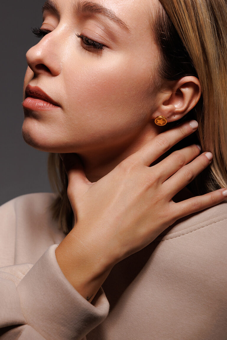 Orecchino Round Stella in Argento 925 con smalto Giallo