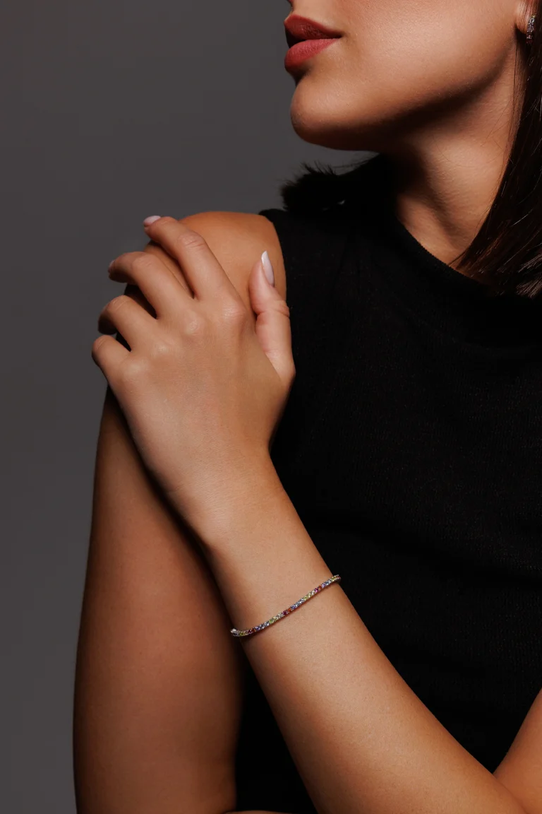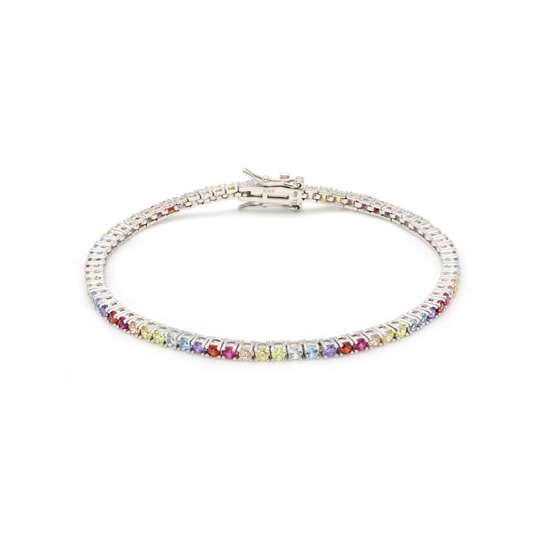 Bracciale tennis in Argento 925 con Brillanti Multicolor