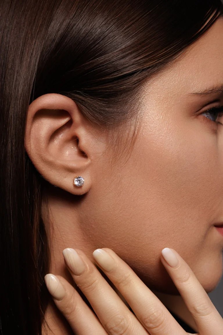 Piercing in Argento 925 Placcato Oro Giallo con Zircone Bianco 3 mm