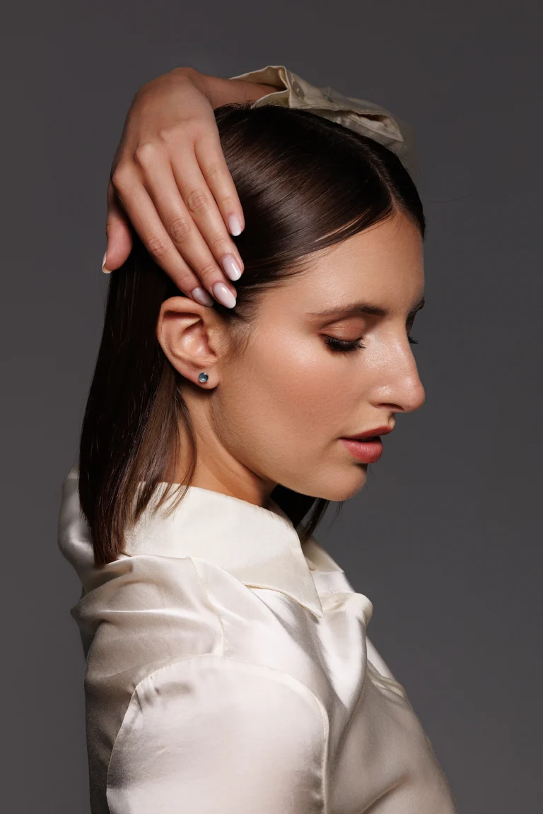 Orecchini Punto Luce in Argento 925 con Brillanti Azzurri