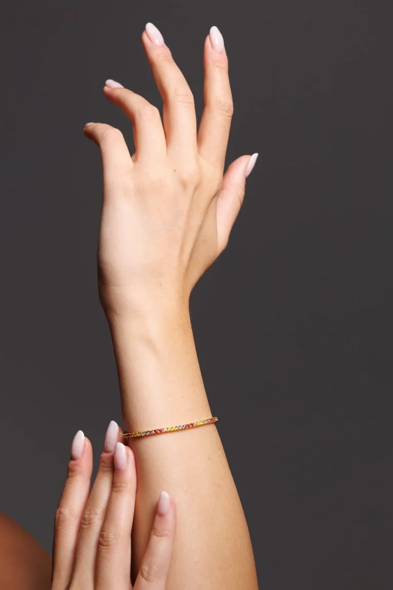 Bracciale tennis in Argento 925 con Brillanti Multicolor Placcato Oro Giallo