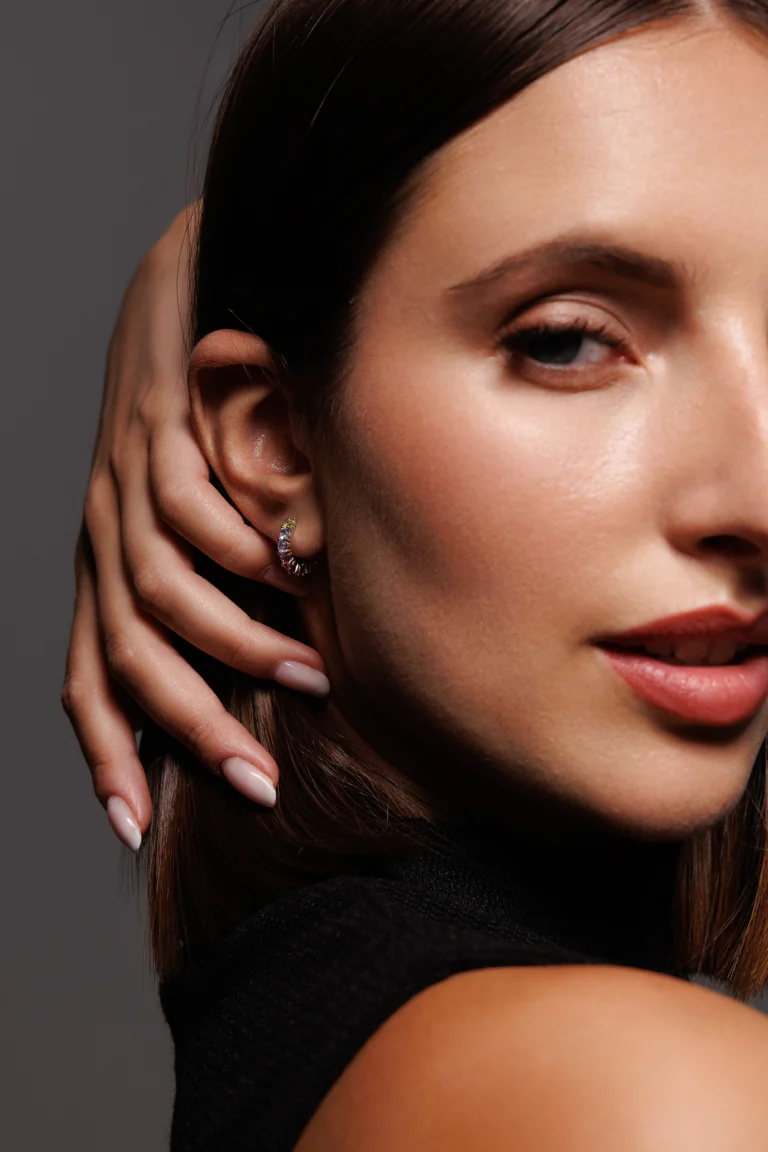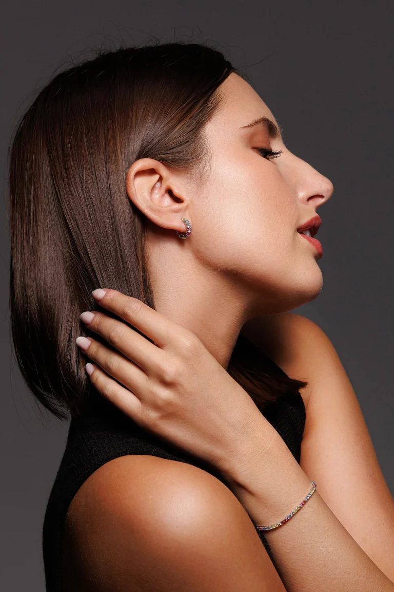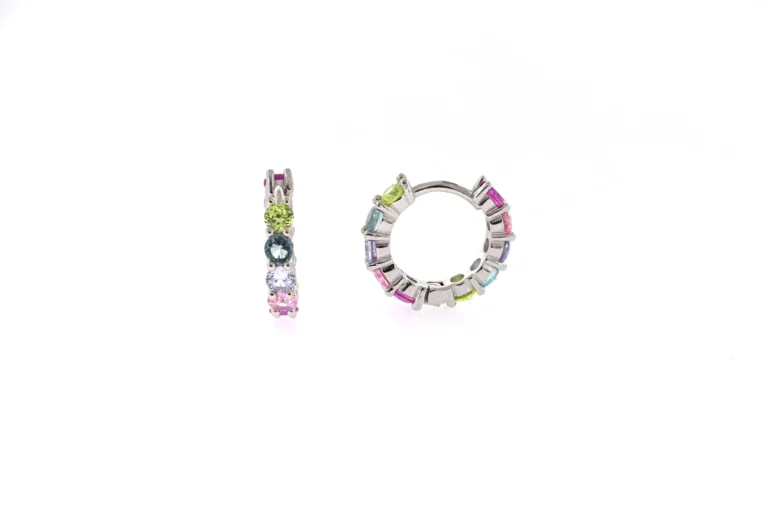 Orecchini a cerchio in Argento 925 con Brillanti Multicolor