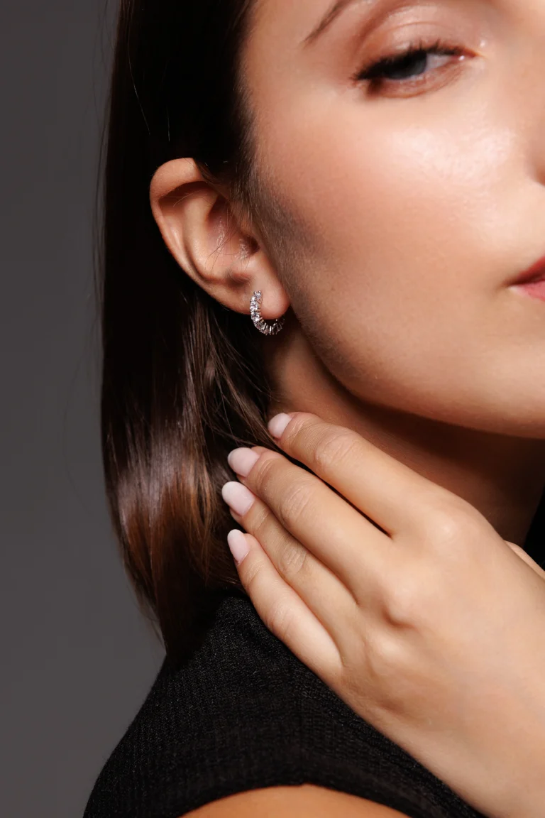 Orecchini a cerchio in Argento 925 con Brillanti Bianchi