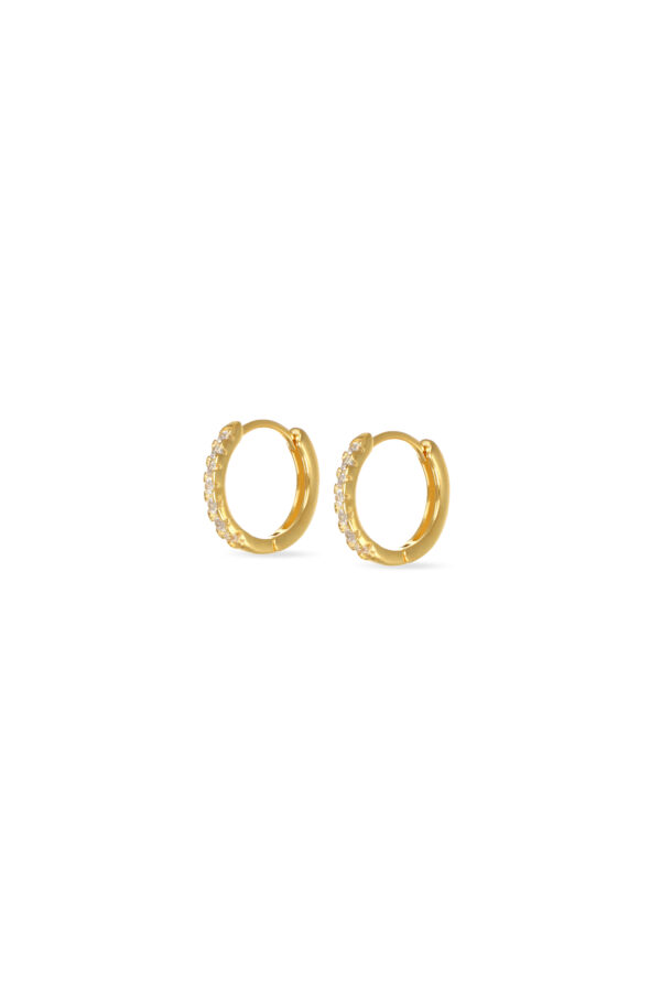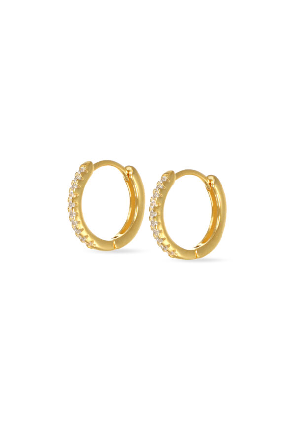 Orecchini a cerchio in Argento 925 Placcato Oro Giallo con Zirconi Bianchi 10 mm