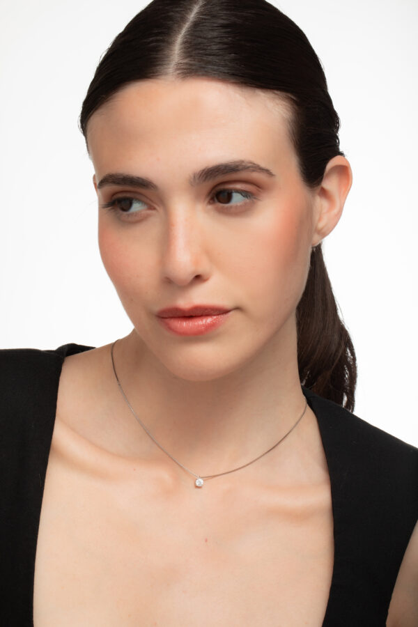 Collana punto luce in Argento 925 con pietra zirconia cubica bianca diametro 5 mm