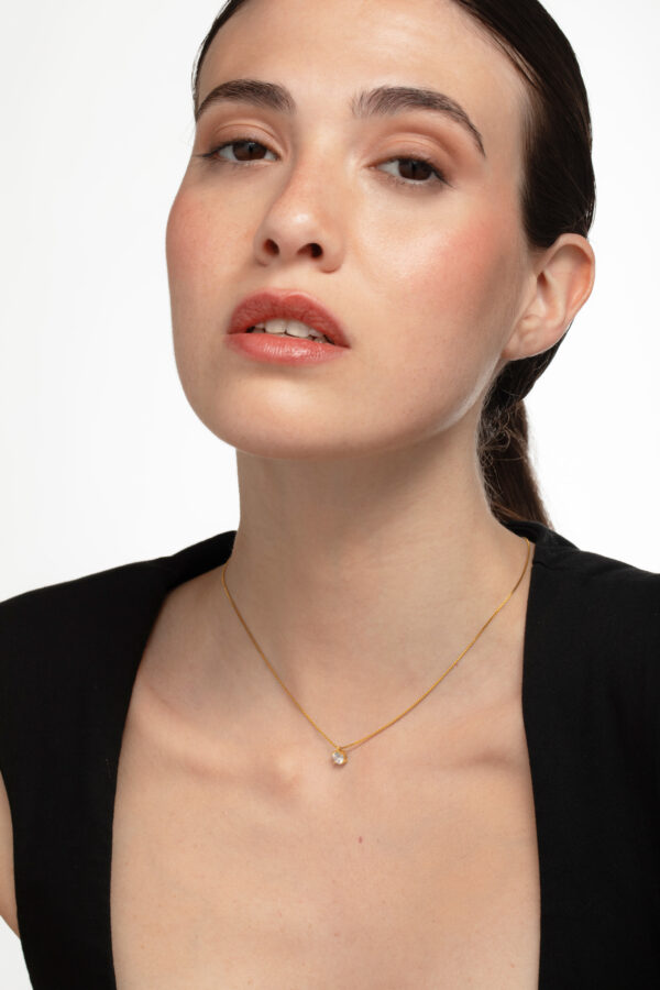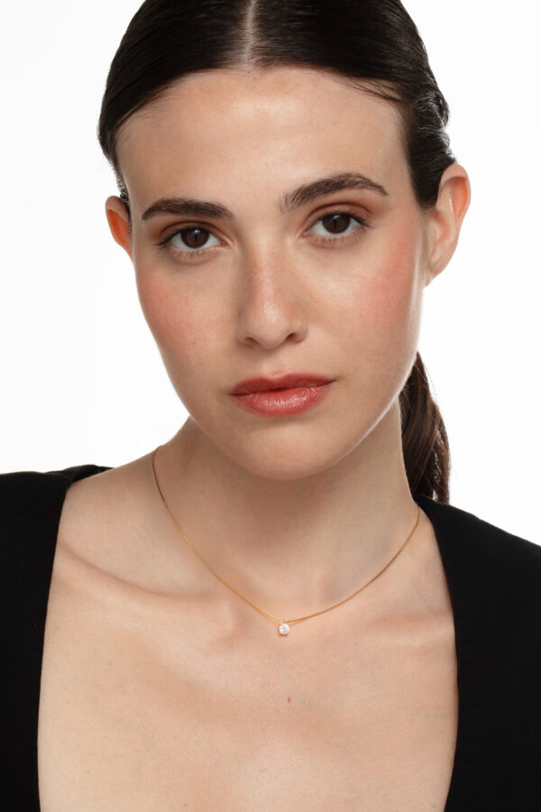 Collana punto luce in Argento 925 placcato oro giallo con pietra zirconia cubica bianca diametro 5 mm
